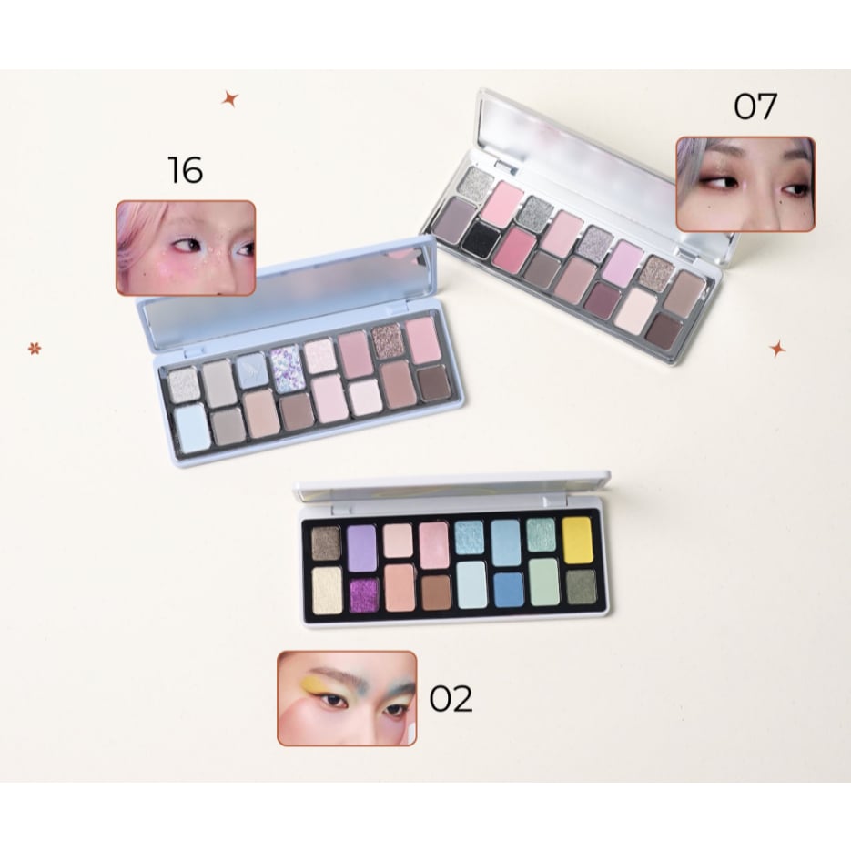 + Đa sắc màu : Bảng Màu Đa Dạng, Phong Phú: Với 16 sắc thái từ tông phấn mắt nhạt đến đậm, kết hợp cả phấn