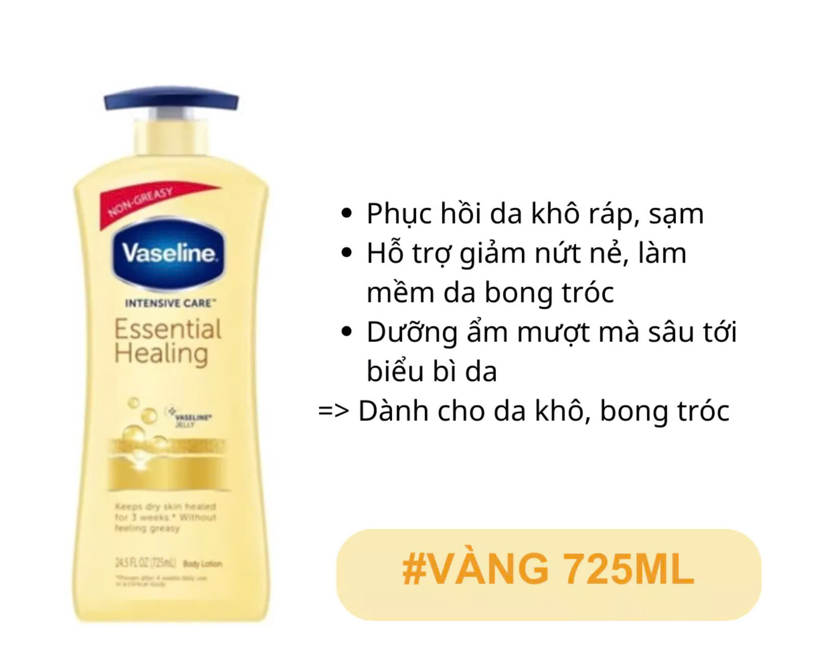 𝙑𝙖𝙨𝙚𝙡𝙞𝙣𝙚 𝙄𝙣𝙩𝙚𝙣𝙨𝙞𝙫𝙚 𝘾𝙖𝙧𝙚 𝘼𝙙𝙫𝙖𝙣𝙘𝙚𝙙 𝘾𝙖𝙧𝙚 (𝙢𝙖̀𝙪 𝙩𝙧𝙖̆́𝙣𝙜): Dưỡng sâu, giúp cho da khô trở nên mềm mại hơn sau 5 ngày.