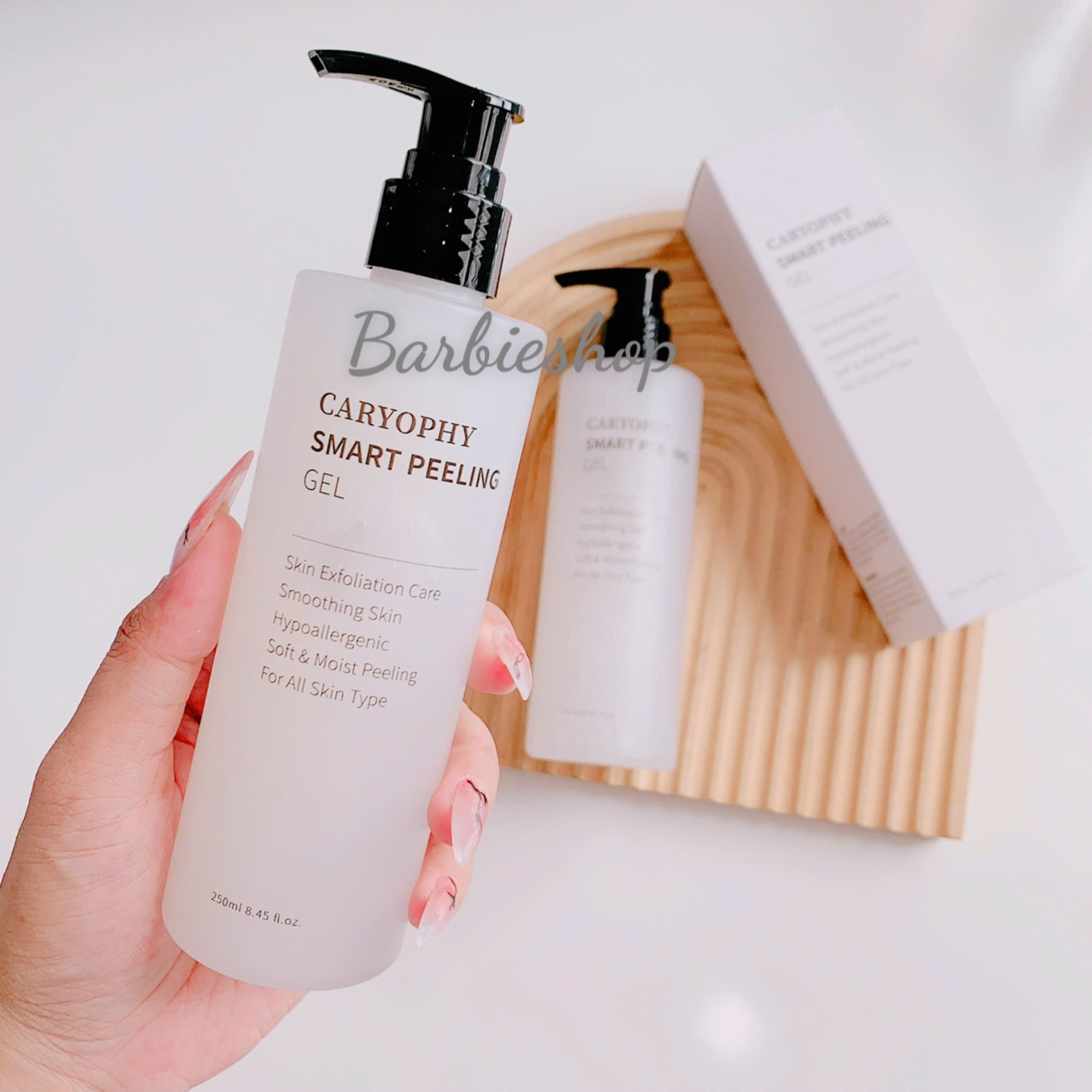 Gel tẩy tế bào chết ngăn ngừa mụn Caryophy Smart Peeling Gel 250ml có thiết kế đơn giản nhưng không kém phần tinh tế. Sản phẩm chăm sóc da mặt này được đựng trong chai nhựa hình trụ màu trắng, đem đến cho bạn cảm giác thanh mát, dịu nhẹ. Chai được đóng chắc chắn, thiết kế dạng vòi màu đen giúp bạn dễ dàng điều chỉnh lượng gel khi sử dụng, tránh không khí bên ngoài len vào ảnh hưởng đến chất lượng sản phẩm.Thông tin như tên sản phẩm, xuất xứ, dung tích, hướng dẫn sử dụng… được in trên bao bì giúp người mua dễ dàng tìm kiếm sản phẩm. Vì khối lượng của sản phẩm khá nhẹ, do đó có thể dễ dàng mang theo bên mình hoặc mang đi xa mà không cồng kềnh hay tốn nhiều không gian.