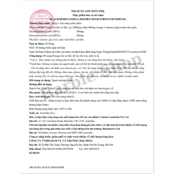 Blackmores Omega Double High Strength Fish Oil là 1 loại dầu cá có hàm lượng cô đặc, chất lượng cao, cung cấp gấp đôi lượng omega-3 trong mỗi viên nang so với các loại dầu cá thông thường khác. Vì vậy, chúng ta chỉ cần dùng 1 viên mỗi ngày để bảo vệ tim, da, mắt và não bộ.