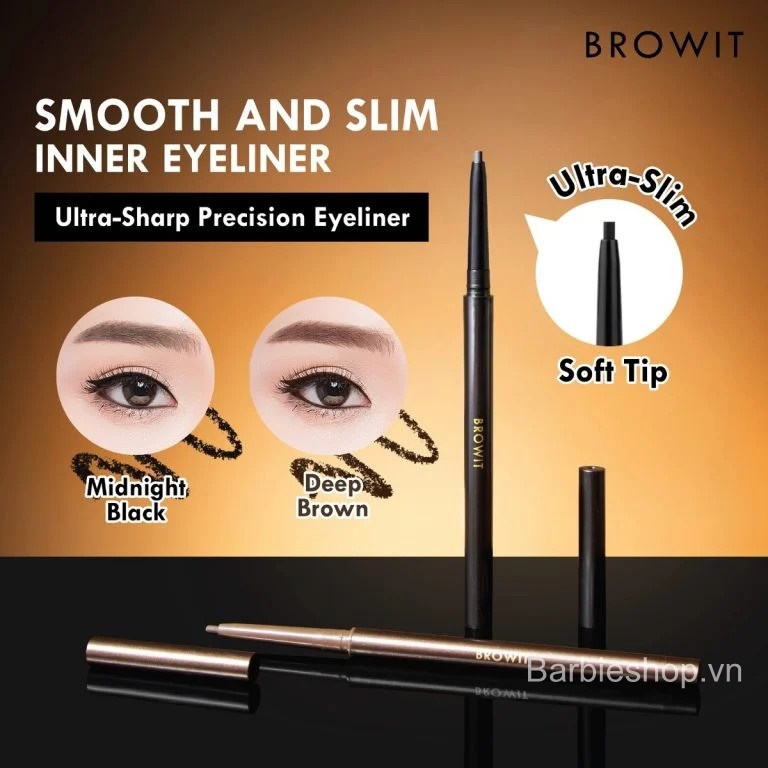 Chì kẻ viền mắt trong Browit Smooth And Slim Inner Eyeliner có dạng Sáp là sản phẩm chì kẻ mắt đến từ thương hiệu mỹ phẩm Browit nổi tiếng của Thái Lan. Với thiết kế dạng sáp với đầu bút nhỏ chỉ 2 mm thao tác dễ dàng, đường kẻ sắc nét, đậm màu và có khả năng không thấm nước, mồ hôi cao. Sản phẩm được đồng sáng tạo bởi NongChat – một chuyên gia trang điểm hàng đầu tại Thái Lan.