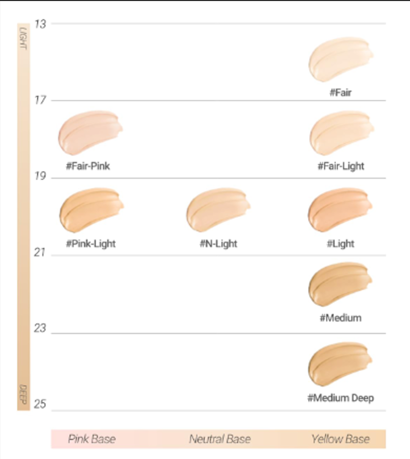 𝗝𝗨𝗡𝗚𝗦𝗔𝗘𝗠𝗠𝗢𝗢𝗟 𝗦𝗸𝗶𝗻 𝗡𝘂𝗱𝗲𝗿 𝗖𝘂𝘀𝗵𝗶𝗼𝗻 𝗹𝗶𝗻𝗲 có sẵn 3 phân loại. Đặc điểm chung đều lên màu đẹp, lớp nền chặt và bền màu, không bị nhanh chóng xuống tone. Và điểm cộng lớn nhất chính là bản màu thật và đa dạng hơn hầu hết các loại cushion Hàn trên thị trường