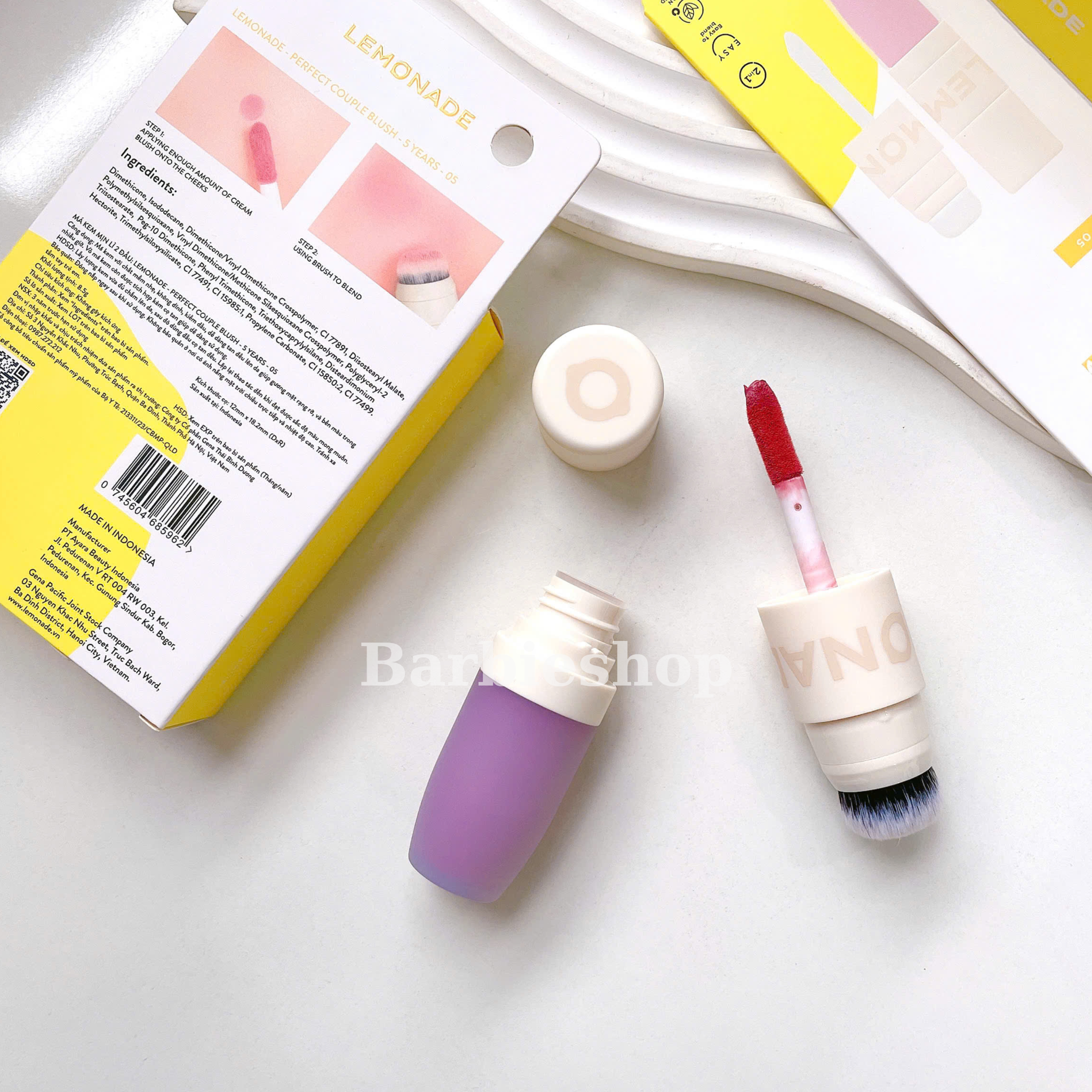 Má Hồng Dạng Kem Mịn Lì Thuần Chay 2 Đầu Lemonade Perfect Couple Blush 5 Years mang đến cho khách hàng 3 tông màu ấn tượng. Với chất kem xốp mịn và được tích hợp cọ má trong sản phẩm cực kì tiện lợi, sẽ giúp tán đều kem má trên da một cách dễ dàng, giúp má ửng hồng mềm mại và tự nhiên ngay trong lần đầu tiên sử dụng.