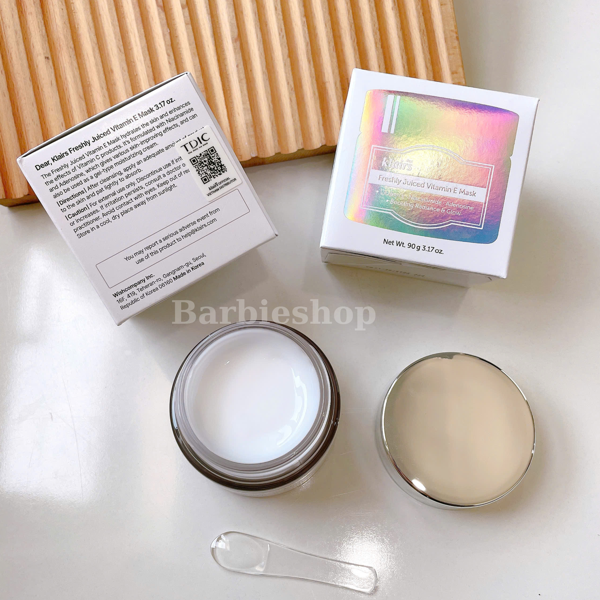 Mặt nạ ngủ Klairs Freshly Juiced Vitamin E Mask giúp dưỡng ẩm và làm mềm da, duy trì làn da luôn căng mọng mịn màng.
