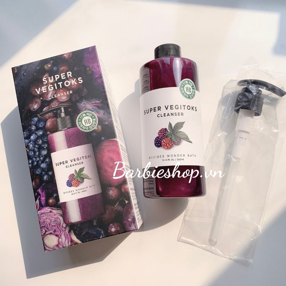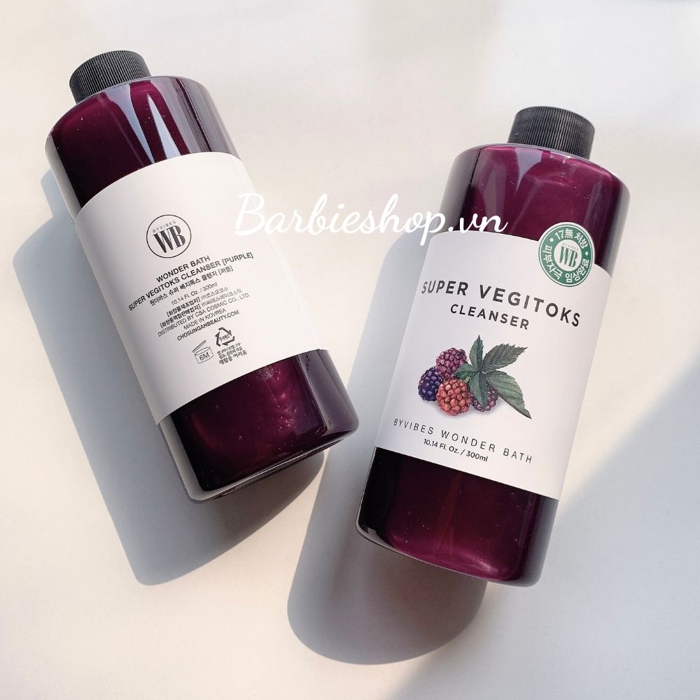 -Thành phần : Wonder Bath Super Vegitoks Cleaner là một loại sữa rửa mặt chính hiệu có thành phần gồm những chất hoạt động bề mặt điển hình như lauryl glucoside, sodium laureth sulfate, cocamidopropyl betaine. Thành phần chính của sản phẩm này hoàn toàn được chiết xuất từ các loại trái cây và rau củ.