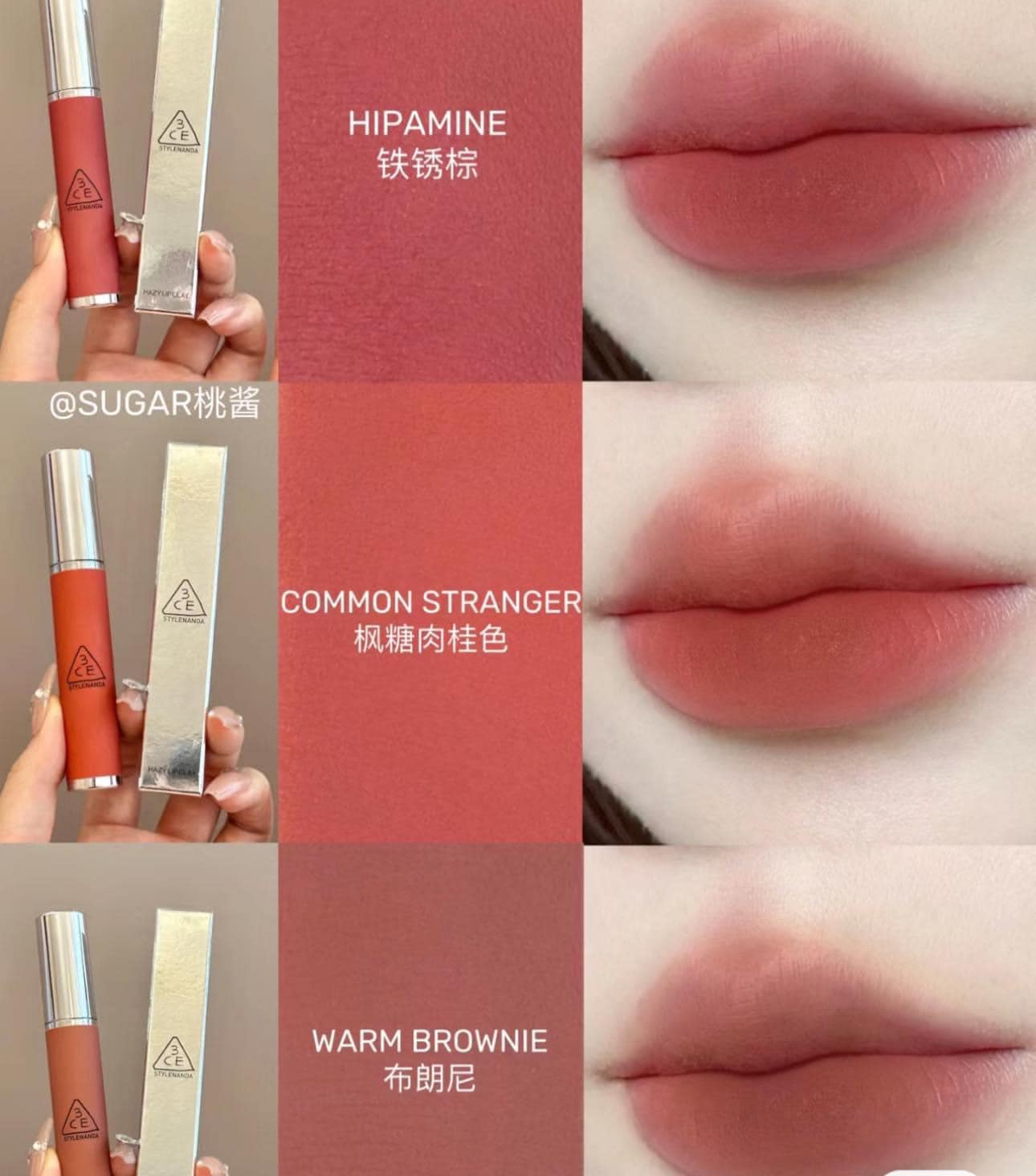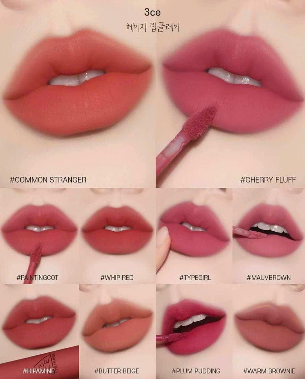 Son Kem Lì, Mịn Mượt Môi 3CE Hazy Lip Clay với 9 tông màu như: