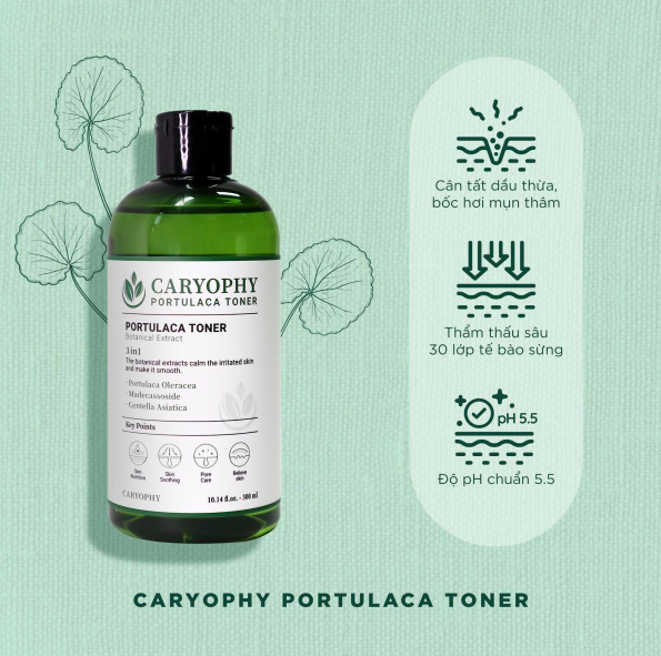 Toner cho da dầu mụn chính là sự lựa chọn tốt nhất dành cho bạn với thành chính gồm các thành phần tự nhiên, chuyên về các vấn đề về mụn như rau má, rau sam, lá nhân trần… cho bạn cảm giác dịu mát khi sử dụng. Kết cấu mỏng nhẹ sẽ dễ dàng thẩm thấu vào sâu các tế bào, làm sạch, se khít lỗ chân lông và giảm mụn hiệu quả. Bên cạnh đó, vì chứa 100% thành phần tự nhiên nên Caryophy Toner lành tính và an toàn với mọi loại da, kể cả những làn da “khó chịu” nhất.