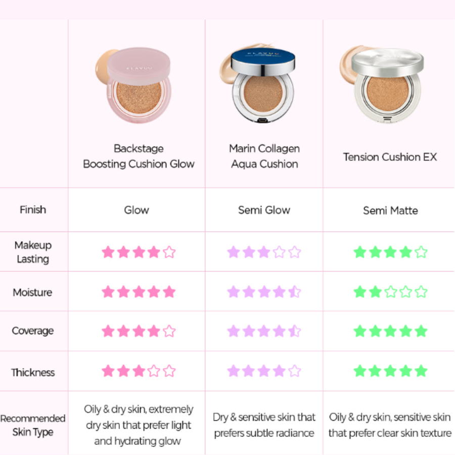 CUSHION KLAVUU với các thành phần không gây kích ứng và phù hợp với mọi làn da, hứa hẹn đây sẽ là loại Cushion khó mà bỏ qua! 5 điểm cộng tuyệt vời của Blue Pearlsation High Coverage Marine Collagen Aqua Cushion:
