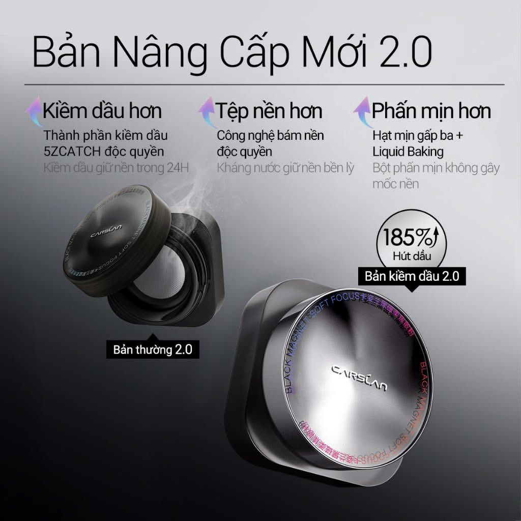- Chuyên về công nghệ hấp thụ màu đen dầu từ tính, chứng nhận có thẩm quyền của SGS ngay lập tức kiểm soát dầu, thu giữ dầu thừa từ da, giữ ẩm cho kem nền