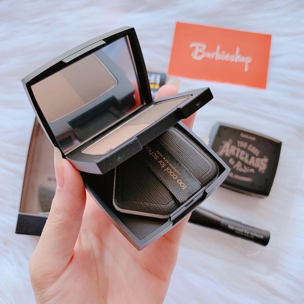 - Dùng miếng bông phấn có trong sản phẩm trộn 2 màu một cách tự nhiên tạo hiệu ứng bóng mờ chuyển màu làm đầy trán và tóc hai bên