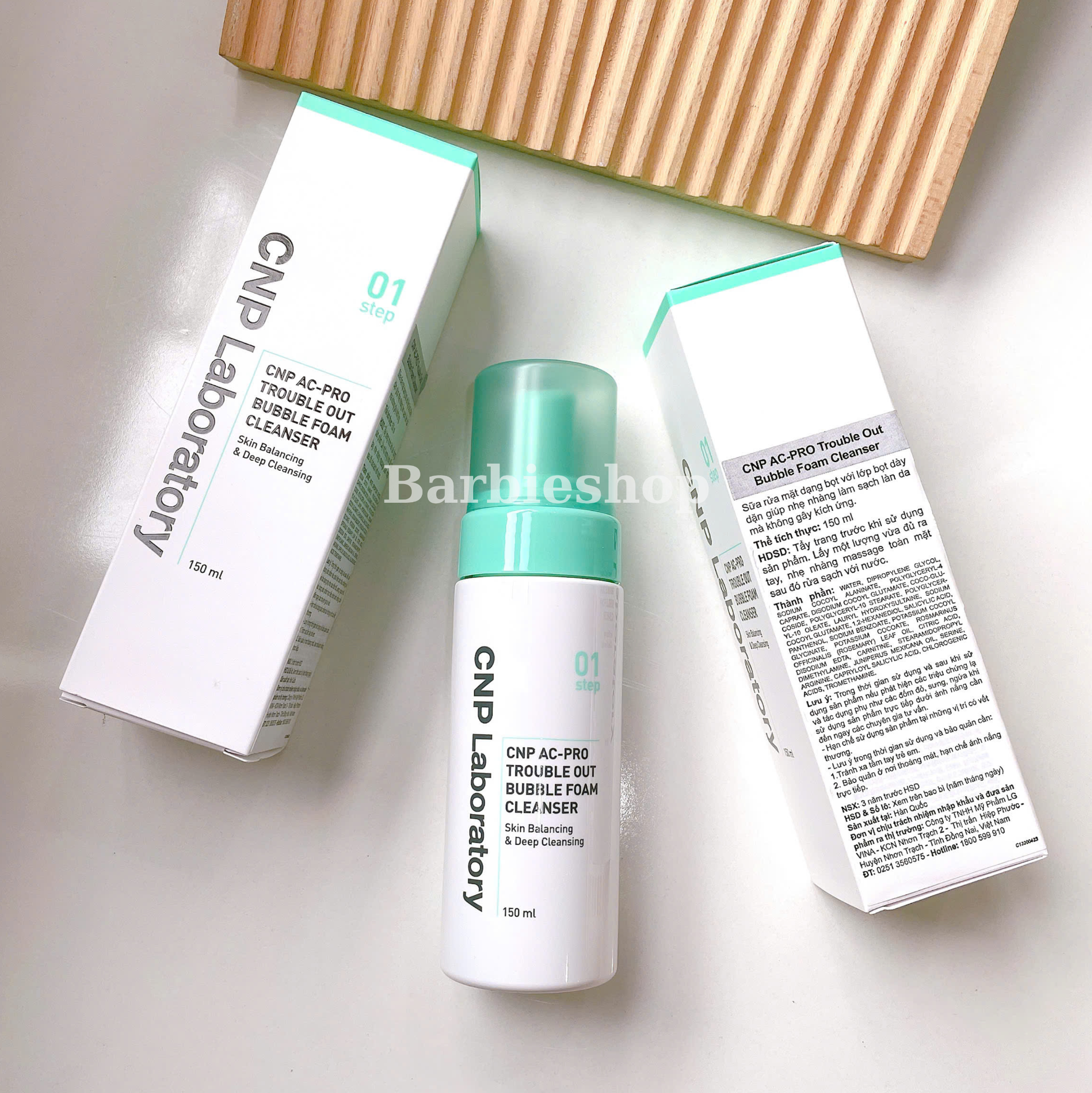 Sữa rửa mặt tạo bọt cho da mụn nhạy cảm làm sạch sâu bã nhờn CNP AC Pro Bubble Foam Cleanser 150ML, với công dụng đặc biệt: