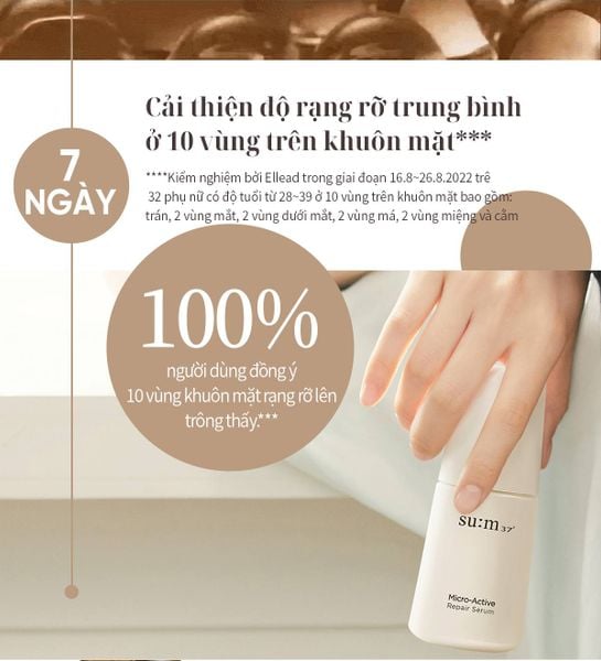 - Tinh Chất Su:m37 Micro-Active Repair Serum 50ml cung cấp độ ẩm sâu, làm dịu, giúp giảm tình trạng khô da, hỗ trợ phục hồi những tổn thương trên da, mang lại làn da mịn màng, rạng rỡ, tràn đầy sức sống.