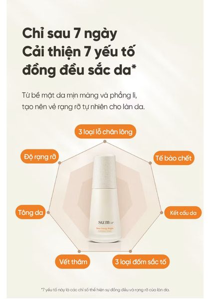 Tinh chất dưỡng sáng và cải thiện 7 yếu tố giúp đều màu da, cho làn da sáng trong rạng rỡ.