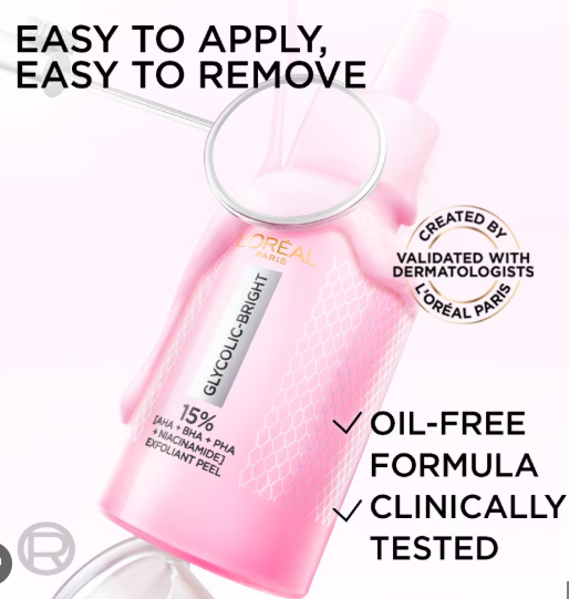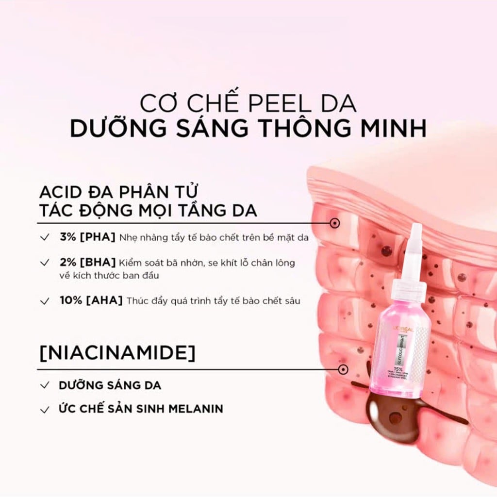 Tinh chất tẩy tế bào chết L'Oréal Paris Glycolic Bright Anti-Dark Spot Exfoliant Peel Giúp Sáng Da Đều Màu Mờ Thâm Nám Da Sáng Hồng Rạng Rỡ