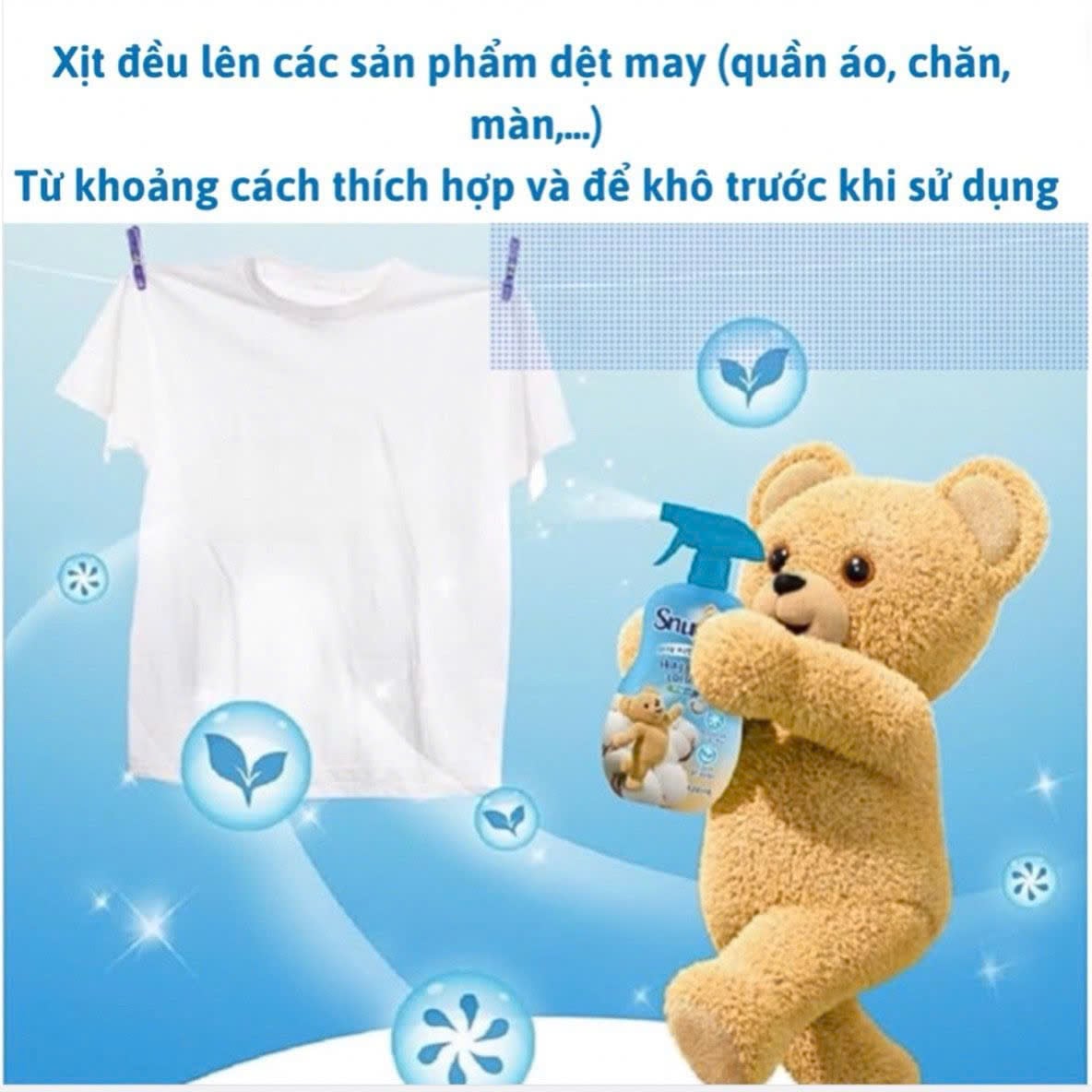 - Xịt Thơm Quần Áo Snuggle có khả năng khử mùi ẩm mốc hiệu quả, mang lại hương thơm tươi mát lưu lại trên quần áo với thành phần chiết xuất thiên nhiên, an toàn cho cả em bé.
