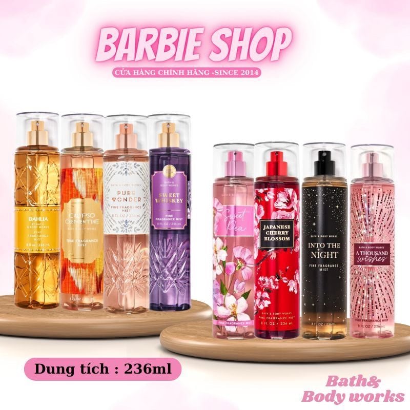 Xịt thơm toàn thân body mist Bath and Body Work 236ml là dòng xịt thơm toàn thân hương nước hoa cao cấp của thương hiệu nổi tiếng Bath & Body Work. Hơn 20 năm qua, Bath & Body Works không ngừng nỗ lực mang đến những sản phẩm “Bodycare” tốt nhất cho người tiêu dùng. Hàng ngàn sản phẩm từ sữa tắm, sữa dưỡng thể, body mist đến gel rửa tay khô,… là hàng ngàn những mùi hương riêng biệt, phù hợp với từng sở thích, hoàn cảnh khác nhau, nhưng ở chúng đều có chung một đặc điểm đã trở thành Slogan của Bath & Body Works: “Happiness Guaranteed or Your Money Back”.